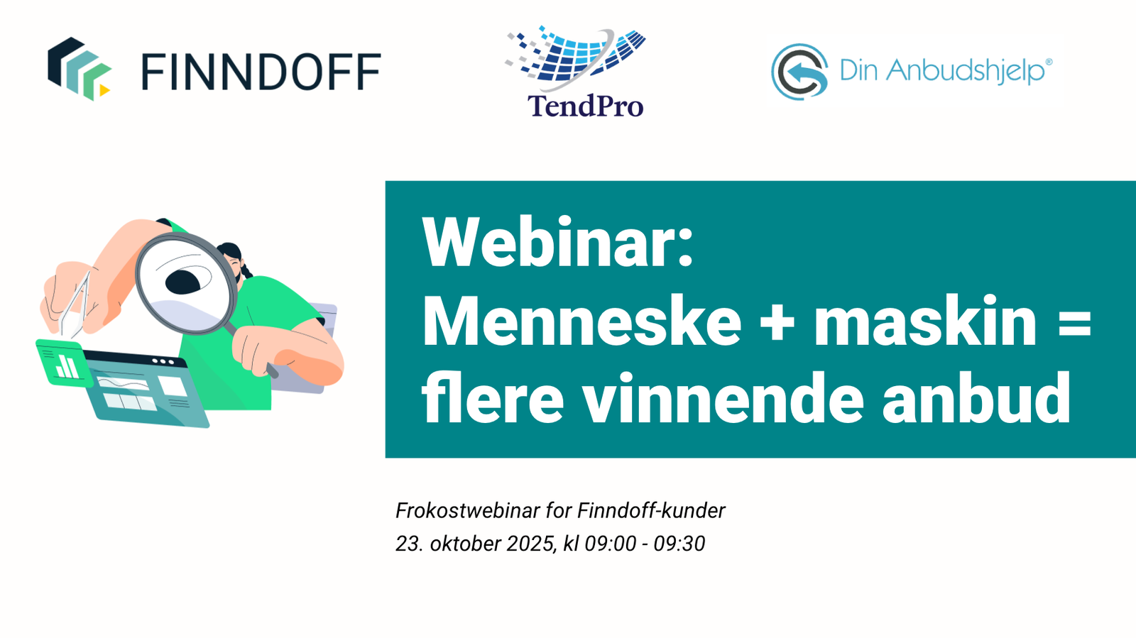 Se webinaret "Menneske + Maskin = flere vinnende anbud" vi holdt for Finndoff-kunder her.